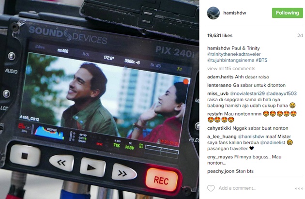 Dalam foto Instagram yang diunggahnya, Hamish tampak memamerkan sebuah layar yang menampilkan dirinya dan Maudy. Foto tersebut rupanya diambil saat keduanya tengah melakukan syuting film "The Nekad Traveler". Hamish dan Maudy pun terlihat memiliki chemistry yang kuat satu sama lain.