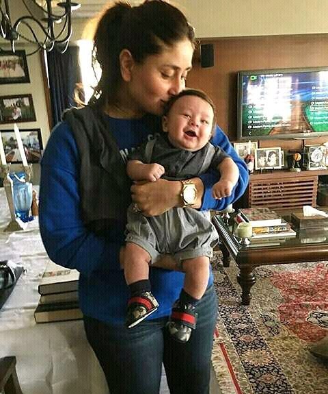 Pada foto, Kareena yang mengenakan kaus lengan panjang berwarna biru dan celana jeans tampak menggendong dan mencium putranya. Si kecil Taimur sendiri terlihat tertawa di pelukan sang ibu.