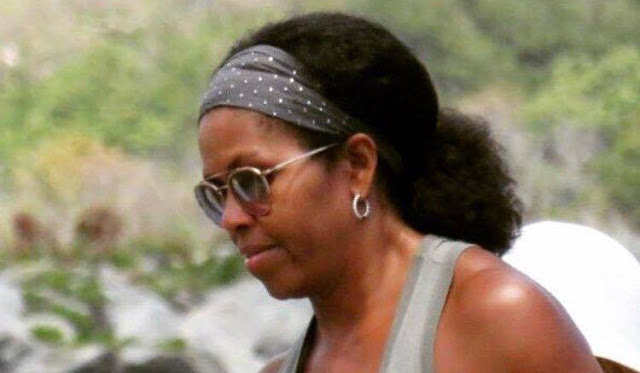 Biasa tampil dengan rambut lurus sepundak, Michelle Obama tertangkap kamera tampil berbeda dengan rambut aslinya....