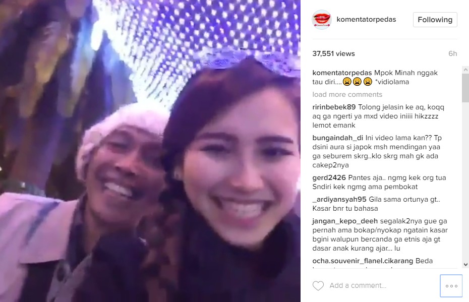 Dalam video itu, terlihat Ayu sedang berjalan berdampingan dengan ayahnya. Selanjutnya, terdengar ucapan Ayu yang menyebut ayahnya tidak tahu diri. "Ni kita baru selesai makan malem, dingin banget disini. Nih lihat, kenalin yang namanya mpok minah. Topi cucunya dipake, nggak tahu diri nggak tuh," kata Ayu Ting Ting. Namun reaksi sang ayah terlihat biasa saja malah tetap berjalan santai sambil tergelak.