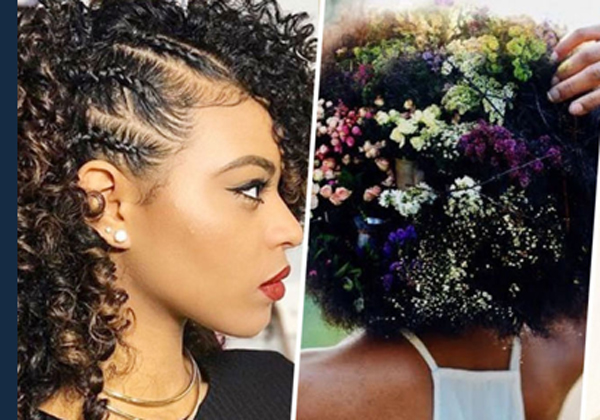 Tidak perlu ragu mengekspresikan diri. Biarkan rambut keritingmu terurai, lalu sematkan beberapa bunga kecil di beberapa sisi. Hasilnya pun lebih anggun. Agar tampilanmu ini awet, pilih bunga yang masih segar, ya. Atau pakai bunga plastik dengan ukuran kecil.