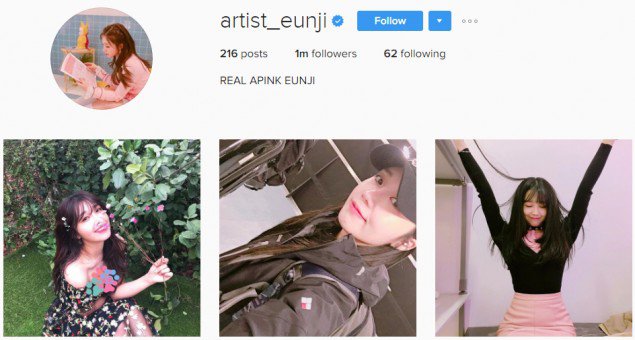 Eun Ji sendiri baru membuat akun Instagram sekitar satu tahun yang lalu. Setelah itu, tidak sampai dua tahun kemudian idola kelahiran 1993 tersebut sukses mendapatkan 1 juta pengikut dan mengunggah 216 postingan.