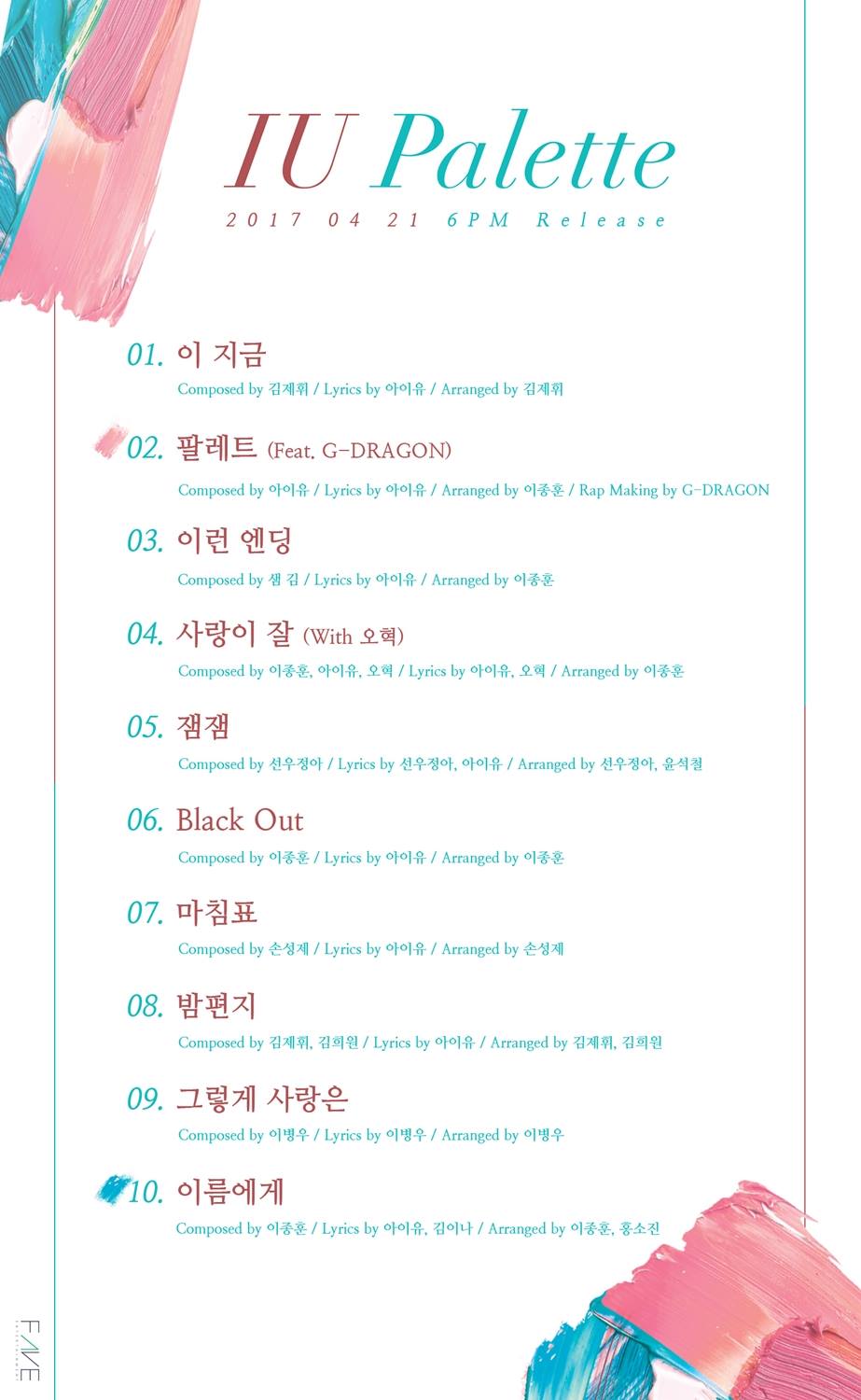 Sementara itu, untuk lagu "Palette", IU berkolaborasi dengan leader Big Bang, G-Dragon, dalam menyanyikan serta menuliskan lirik bagian rap. Tentu saja hal ini pun segera mengundang reaksi heboh netter yang mengidolakan kedua musisi tersebut.
