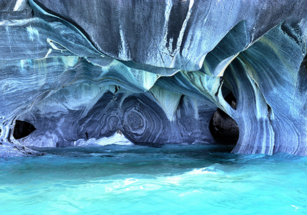 Gua yang satu ini berbeda dari gua lainnya yang menawarkan kesan gelap dan suram. Marbel Cave memberi penampakan yang indah dengan dominasi warna biru. Gua yang terletak disebuah pulai kecil diperbatasan Chili dan Argentina ini mempunyai corak marbel yang indah. Corah marbel ini didapat dari gerusan ombak yang mengikis bagian bawah pulau.