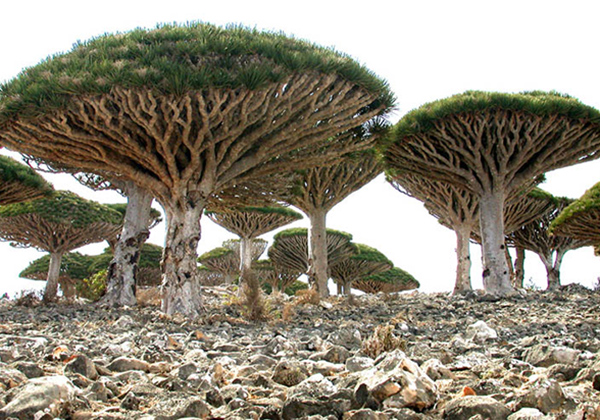Pulau Socotra yang berada di Yaman ini ternata punya pemandangan yang unik. Saat tiba disana, kita akan disuguhi pemandangan yang tidak biasa. Seperti pohon-pohonnya yang unik. Pohon disana rata-rata mempunyai batang yang besar dan daun yang bergerumbul. Seperti pohon blood dragon yang terkenal itu. Bentuknya yang unik ini disebabkan suhu panas bertahun-tahun di pulai ini sehingga membuat bentuk asli pohon menyesuaikan lingkungannya.