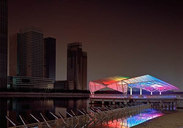 Saat mengambil foto di malam hari, Caemmerer menangkap banyak objek yang menarik. Salah satunya lampu-lampu dipinggir sungai. Lampu-lampu ini sedikit mengurangi kesan seram di kota mati.