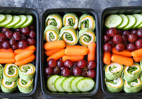 Menu ini bisa kamu siapkan kurang dari 30 menit. Siapkan roti tawar yang ditipiskan atau lembaran tortila. Lalu gulung daging ayam kukus bersama keju lembaran dan bayam. Atau gantikan dengan sayur lainnnya. Sebagai pendamping rebus wortel hingga setengah lunak. Kalau suka buah yang manis, tambahkan anggur sebagai pencuci mulut.