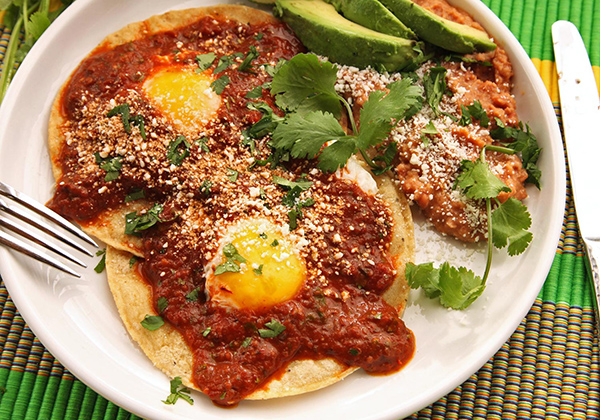 Huevos Rancheros adalah makanan khas Meksiko. Sajian ini biasa dihidangkan untuk sarapan. Tortila jagung disiram dengan kacang-kacangan, apukat, saus tomat, saus salsa dan terakhir telur ceplok.