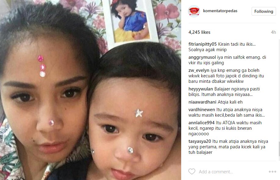Tak hanya itu, netizen bahkan menduga gadis kecil yang ada dalam foto itu adalah anak Ayu Ting Ting, Bilqis. "Kirain tadi itu ikis... Soalnya agak mirip," seru netizen. "iya min salfok emang. di vkir itu iqis galing," seru lainnya.