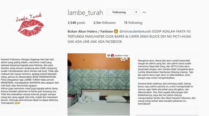 Tersenggol kasus kudeta dan penerimaan uang dari endorse, admin @lambe_turah mengaku telah berpindah tangan. Rupanya, akun _lambe_turah sempat dijual oleh pemilik lama, Mami Nita alias Mommy Ai.