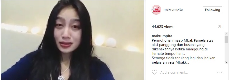 Sambil menangis, ia berharap masyarakat Ternate dapat memberinya maaf atas insiden beberapa waktu lalu. "Sekali lagi saya minta maaf sebesar-besarnya kepada masyarakat Ternate dan pada semuanya masyarakat," harap Pamela.