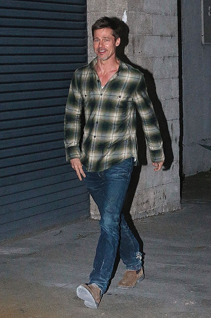Beberapa waktu yang lalu paparazi mendapati Brad Pitt baru saja keluar dari studio seninya di Los Angeles pada pagi buta. Ketika itu, aktor kelahiran 1963 tersebut terlihat mengenakan kemeja longgar bermotif kotak-kotak yang dipadu dengan celana jeans santai dan berpose tersenyum pada kamera.
