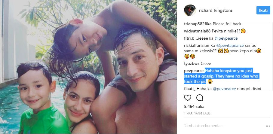 Kanal247.com - Kedekatan Pevita Pearce dan Mike Lewis kembali menjadi perbincangan netizen. Pasalnya akun Instagram seorang anak laki-laki dengan akun @richard_kingstons mengunggah foto yang memperlihatkan keduanya sedang berenang bersama.