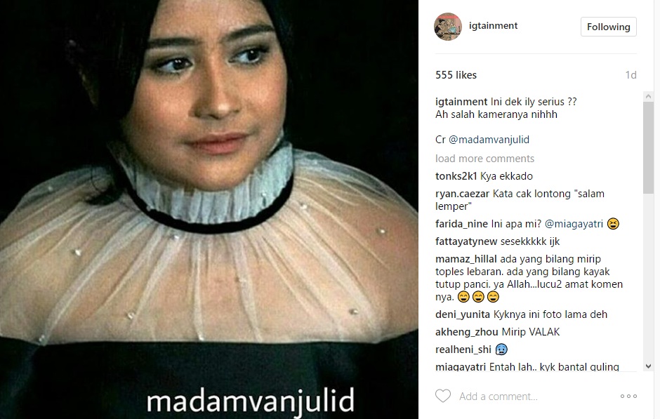 Karena gaun itu, netizen menuding Prilly terlihat lebih berisi. Tak sedikit netizen yang layangkan komentar pedas pada Prilly. "Apaan tu ? Mirip toples lebaran," seru netizen di kolom komentar akun @igtainment. "Entah lah.. kyk bantal guling @farida_nine," seru lainnya.