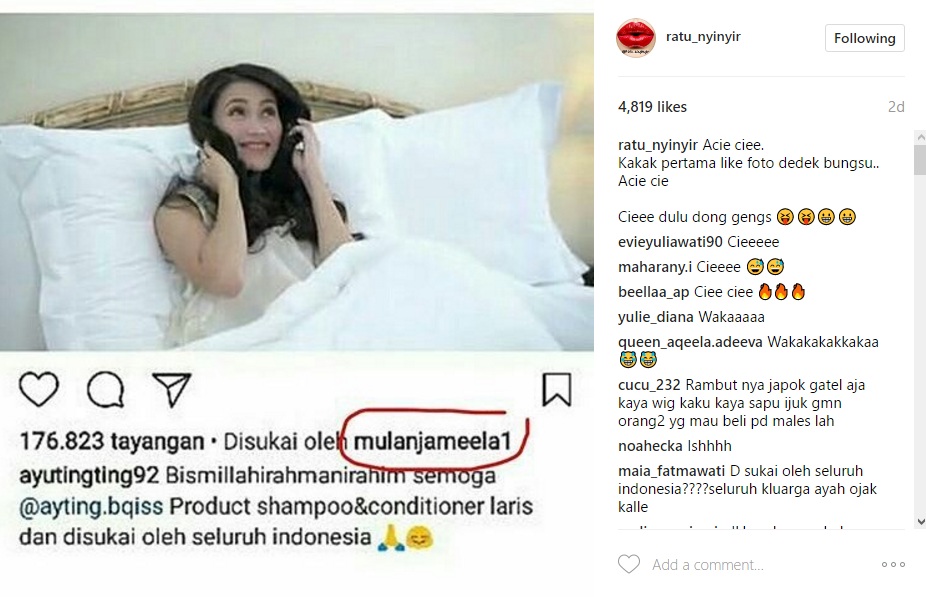 Begini reaksi netizen saat Mulan Jameela menyukai postingan Ayu Ting Ting.