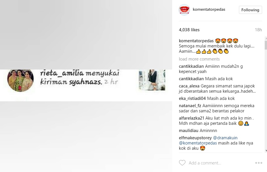 Karena postingan @komentatorpedas itu, tak sedikit netizen yang semakin berharap kedua keluarga kembali harmonis seperti sedia kala. "alhamdulillah smg cepat harmonis apalagi mau lebaran, sesama kluarga saling memaafkan,bersatuu kembali membasmi ubul *tetepjulitt*," harap netizen. "Aku liat msh ada ko min . Mdh mdhan aja pertanda baik," harap lainnya.