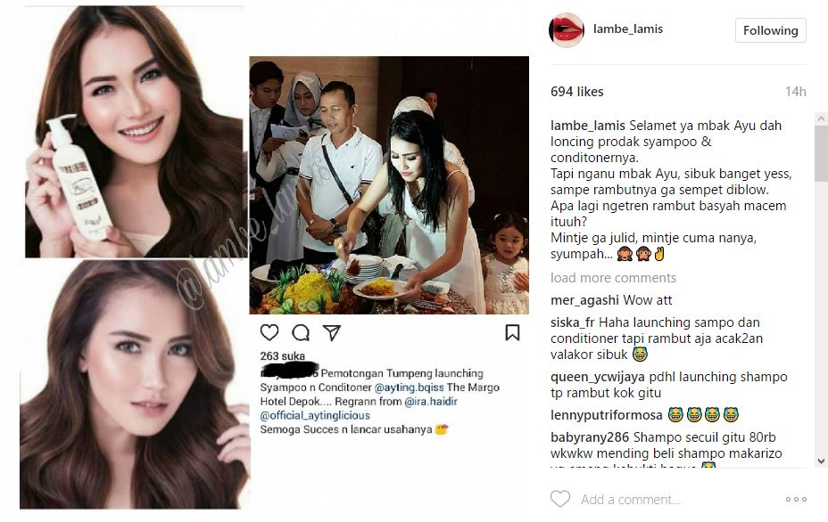 Netizen menganggap penampilan Ayu kala itu tak sesuai dengan produk yang akan dipasarkannya. "Lagian perfomance nya ga ngedukung bgt sm acaranya tuh rambut kaya" org bangun ksiangan buru2 mandi n cuss... Sangat tdk mnarik," ujar netizen. "Ga menghargai acara launching produk jualannya.. Gimana org mau beli, lah modelan rambut ownernya aja kaya gtu yaasalamm, mbok ya diblow yg syantikk.. Ijk aja yg rakyat jelata rambutnya msh bagusan," ujar lainnya.