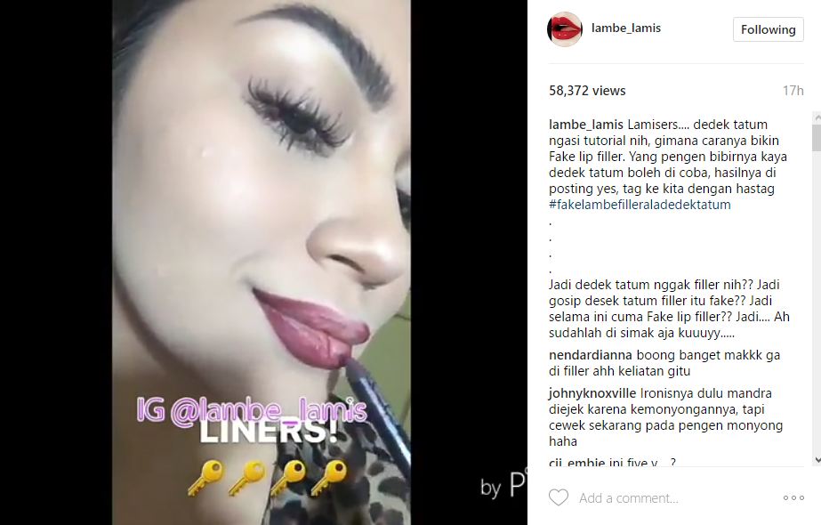 Seolah ingin menampik gosip operasi itu, belakangan Ariel membagikan postingan melalui Instagram Story miliknya terkait tutorial menebalkan bibir. Dalam video yang diunggah ulang oleh akun @lambe_lamis itu, mula-mula Ariel membubuhkan fondation sebelum menggunakan lipliners untuk membentuk bibir sesuai keinginannya.