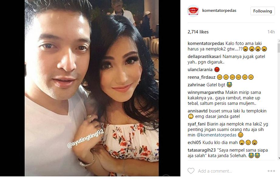 Begini reaksi netizen saat beredar foto Ayu Ting Ting nempel pada seorang lelaki.