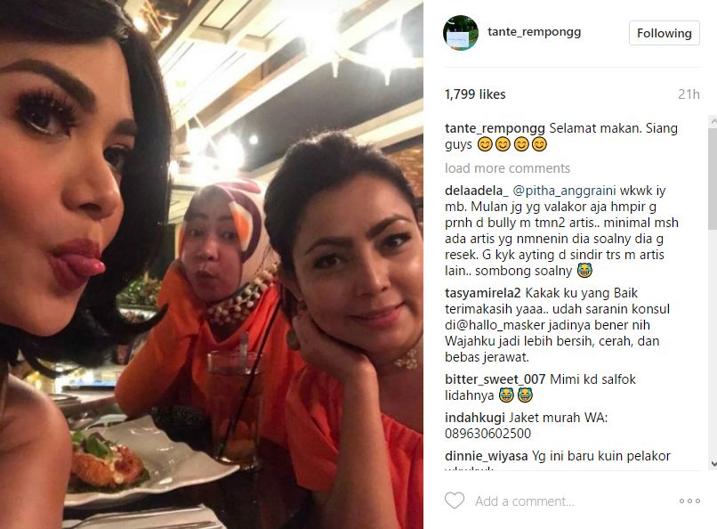 Namun, alih-alih mendapat pujian, Melly malah ikut disindir netizen karena kebersamaannya dengan Mayang dan Krisdayanti. "melly dikerubungin pelakor," seru netizen. "Melly makan bareng duo pelakor," seru lainnya.