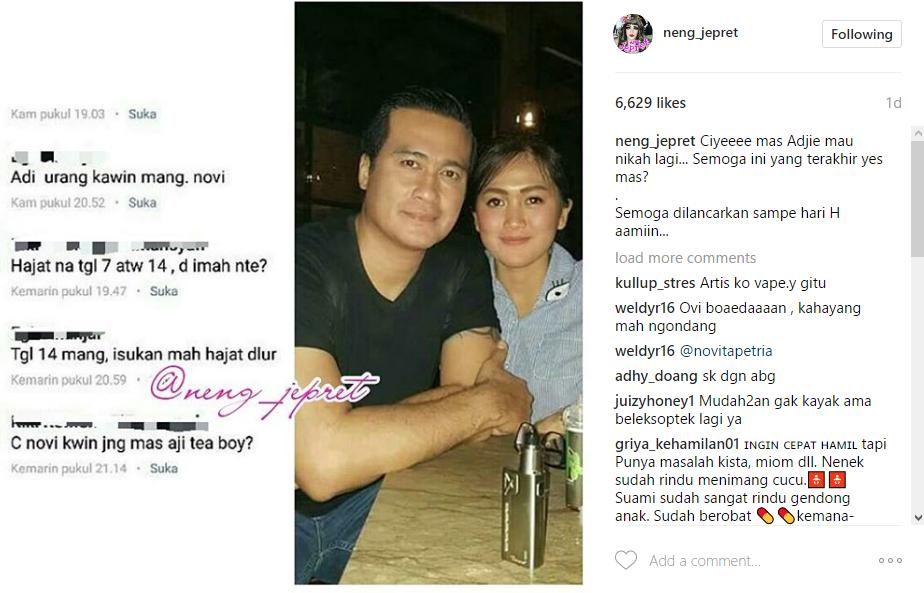 Di sisi lain, tak sedikit juga yang malah menyindir Adji lantaran beda usia yang terpaut jauh. "Gue liat berita di opera mini, gandengannya yang sekarang terpaut 27 tahun. Pantesnya malah jadi anaknya.," sindir netizen. "Dapet bunga muda nich.seger harum nikmat.," sindir lainnya.