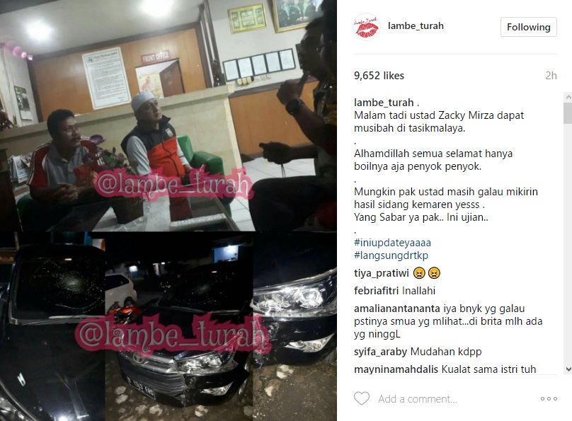 Begini reaksi netizen saat ustadz kondang Zacky Mirza ditabrak seorang pengendara motor.