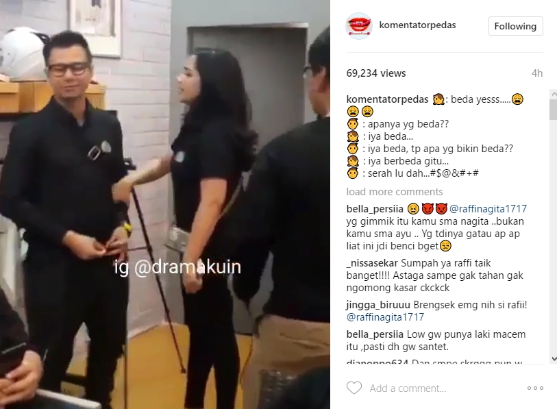 Mengetahui peristiwa itu, netizen pun ikut geram. Tak sedikit netizen yang memberikan komentar pedas pada Raffi. "@raffinagita1717 yg gimmik itu kamu sma nagita ..bukan kamu sma ayu .. Yg tdinya gatau ap ap liat ini jdi benci bget," sindir netizen pada kolom komentar akun @komentatorpedas. "@raffinagita1717 Rafi berhentilah menyakiti hati kak gigi,krn sperti katamu sendiri, wanita baik gak akan datang 2x dlm hidupmu," sindir lainnya.