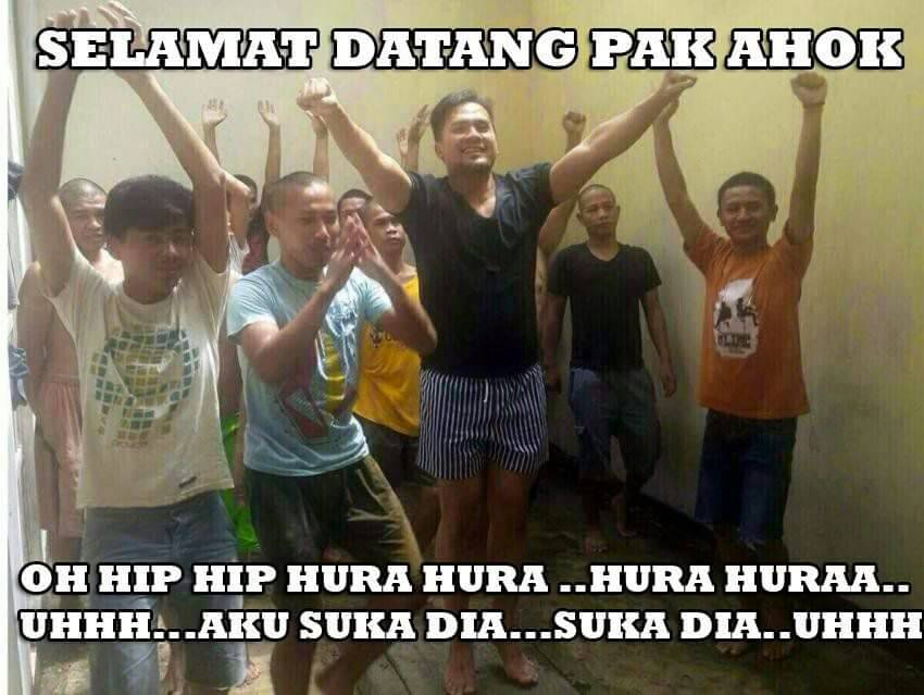 Namun, ini bukan kejadian sebenarnya, melainkan meme kocak yang sedang viral di dunia maya. "Selamat Datang Pak Ahok. Oh Hip Hip Hura Hura..Hura Huraa..Uhhh...Aku Suka Dia...Suka Dia..Uhh," bunyi meme tersebut.