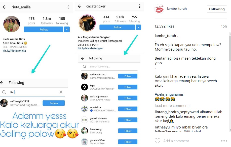 Saat kabar itu semakin memanas, tiba-tiba publik dibuat heboh. Pasalnya, Rieta Amilia dan Caca Tengker memilih untuk mengikuti akun Instagram Raffi Ahmad lagi.