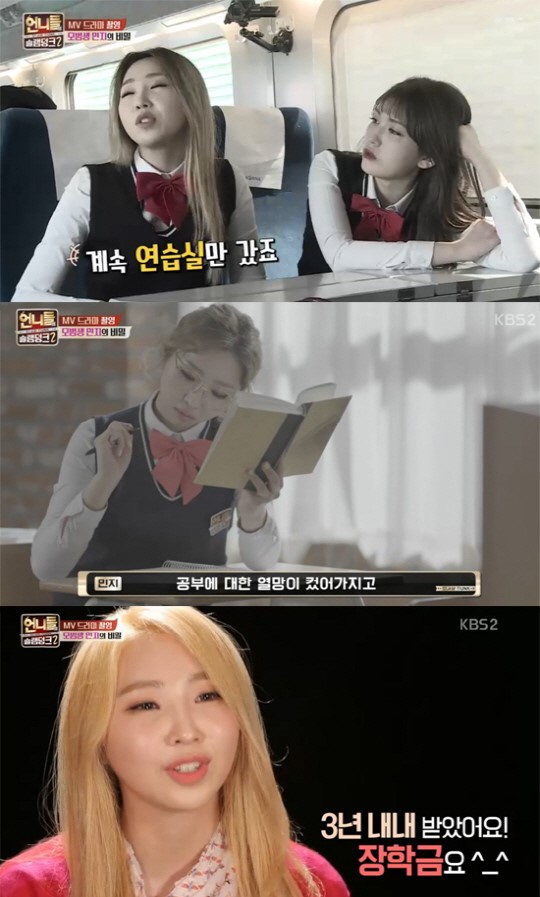 Baru minggu lalu, Minzy curhat tentang bagaimana dia melepaskan kesempatan untuk berbagai kenangan dengan temannya semasa menjadi trainee idol. Selama interview, dia ditanyai mengenai rangking kelasnya saat kecil. Penyanyi kelahiran 1994 itu kemudian mengejutkan semua orang dengan mengungkapkan bahwa dia berada di posisi tiga besar kelasnya.