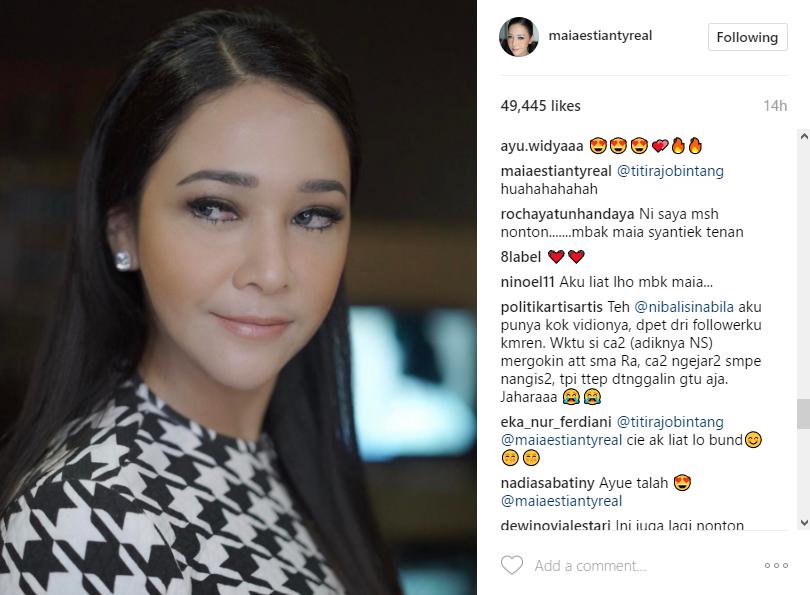 Tak banyak reaksi yang diberikan Maia dalam menanggapi komentar Titi. Maia hanya menanggapi dengan tawanya. "@titirajobintang huahahahahah," balas Maia.