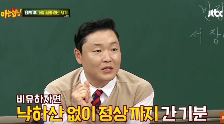 Kanal247.com - Baru-baru ini PSY curhat tentang beberapa efek yang dia rasakan semenjak single andalannya "Gangnam Style" mendunia. Lewat penampilannya di acara "Knowing Bros" pada 13 Mei lalu, PSY mengungkapkan efek apa yang paling dia rasakan kepada Heechul cs.