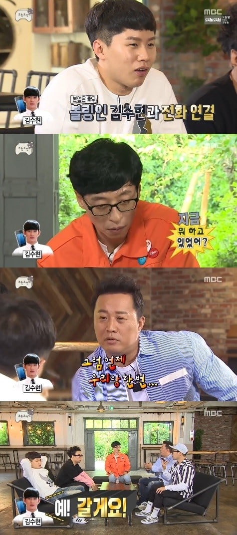 Kanal247.com - Di episode "Infinite Challenge" yang ditayangkan 13 Mei lalu, para member secara spontan menelpon aktor tampan Kim Soo Hyun. Yoo Jae Suk cs sedang asik berbicara berapa banyak aktor menyukai bowling, dan HaHa kebetulan memiliki nomor telepon So Hyun.