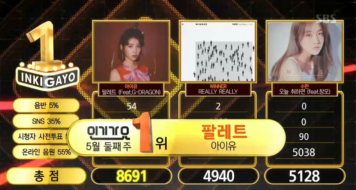 Kemenangan IU menjadi kemenangan kedelapannya dengan single "Palette". Tak hanya itu saja penyanyi cantik itu juga sukses meraih gelar "Triple Crown".