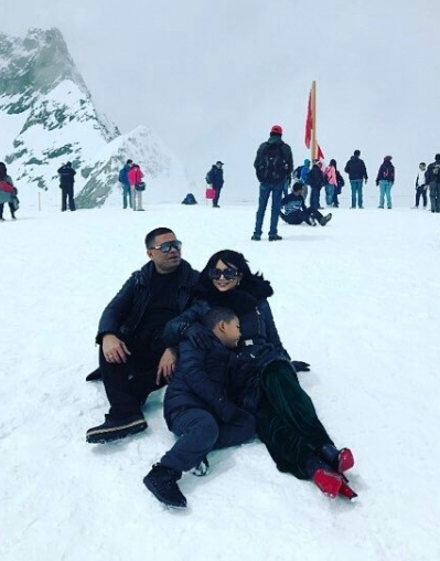 Bersama Raul dan Kellen, KD nampak bahagia menikmati suasana salju di Jungfrauoch, jalur lintasan gunung di Swiss.