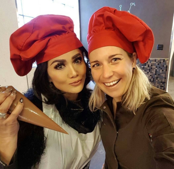 KD menyempatkan diri untuk selfie bersama salah satu chef di Funky Chocolate Club, Swiss.