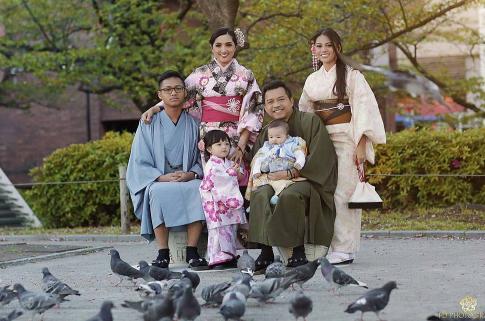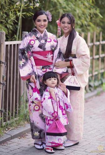 Kembali pamer pose bertiga mengenakan kimono yang sama, Anang nampak belum terlihat dalam foto keluarga tersebut.