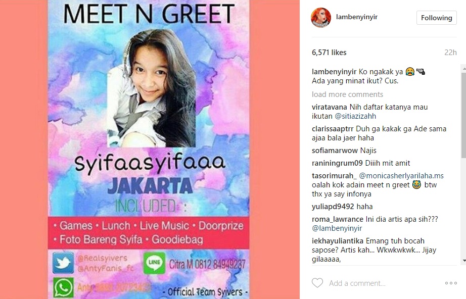 Begini reaksi netizen saat beredar poster 'meet n greet' bersama adik Ayu Ting Ting.