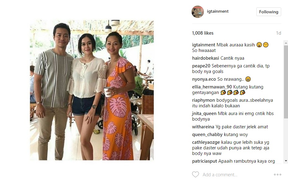 Beberapa waktu lalu, Aura mengunggah foto melalui Instagram Story miliknya yang diunggah ulang oleh akun @igtainment. Dalam postingan itu, Aura tengah bersama Indah Kalalo dan seorang rekan pria.