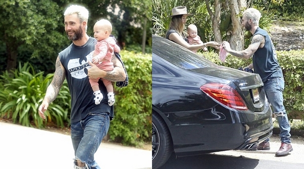 Menjadi orang tua baru, membuat pelantun lagu "Animal" dan model Victoria Secret itu bergantian dalam mengurus bayi perempuan mereka. Terlihat dalam foto, dengan rambut pirang dan tatto di lengan, Adam menggendong putri kecilnya sambil tersenyum. Di kesempatan lain sang istri terlihat membawa pakaian bayi yang diberikan kepadanya.