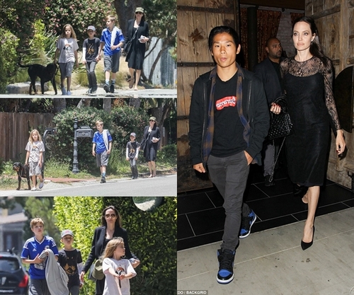 Keluarga selebriti itu terlihat berjalan santai bersama anjing mereka di kawasan Malibu, tak jauh dari perumahan mewah milik mereka. Sayang, tiga anak Jolie yang lain Zahara, Pax, dan Maddock tak ikut bergabung.