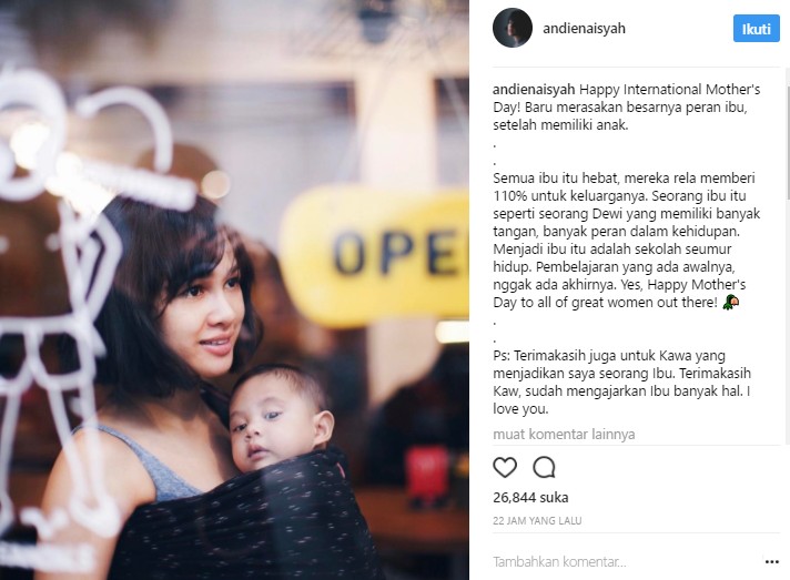 Menjadi ibu baru tentu saja menjadi momen tak terlupakan bagi Andien. Ia mengatakan bahwa semua ibu didunia adalah yang terhebat.