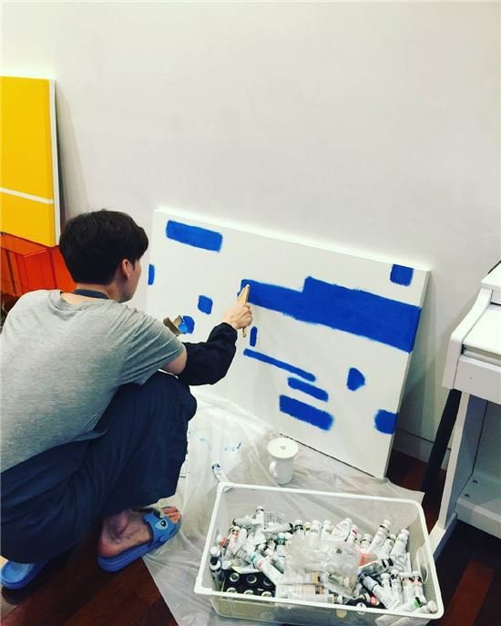 "Aku mendapatkan sertifikat 'Children's Art Leader' beberapa hari yang lalu. Oleh sebab itulah aku mulai bekerja bersama-sama dengan suamiku di rumah," tulis Ku Hye Sun dalam postingannya tersebut. "(Lukisan) yang di sebelah kiri itu hasil karyaku, dan yang di sebelah kanan merupakan hasil karya Ahn Jae Hyun. Aku melukiskan suasana akhir musim semi, dan kesayanganku mengekspresikan kepolosan dalam lukisannya. Dia benar-benar artis yang manis sekali."
