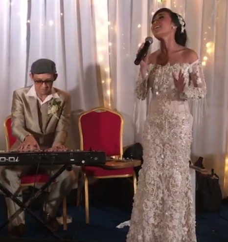 Rini dan Jevin pun tak sungkan mempersembahkan lagu untuk para tamu undangan.