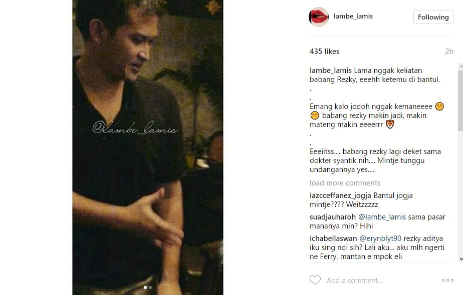Tak hanya itu, admin akun @lambe_lamis juga mengungkapkan bahwa Rezky tengah dekat dengan seorang dokter cantik. "Eeeiitss.... babang rezky lagi deket sama dokter syantik nih.... Mintje tunggu undangannya yes....." imbuhnya dalam caption foto.