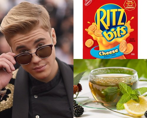 Pasti kamu penasaran apa yang dikonsumsi Bieber sebelum naik ke atas panggung konsernya. Ternyata, ia wajib minum teh herbal, makan Swedish Fish, dan Ritz Bitz dengan varian keju dan kacang.
