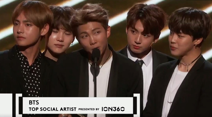 .@BTS_twt accepts Top Social Artist presented by @ion360, thanks to you guys! 💕 #BBMAspic.twitter.com/lZWEuYXp6I