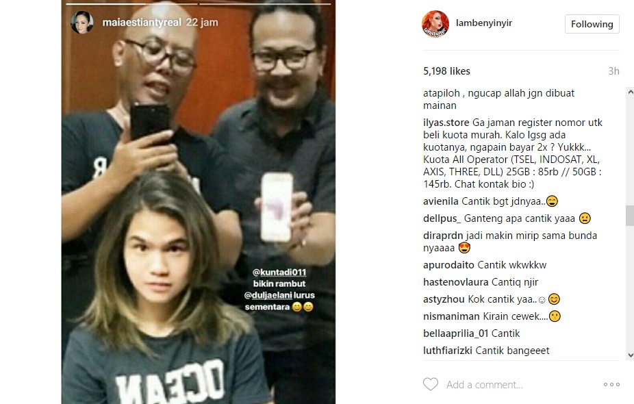 Sempat dibuat kaget, rupanya anak di dala postingan itu adalah Dul Jaelani. Dengan gaya rambut barunya, anak Maia Estianty dan Ahmad Dhani itu mandapat pujian netizen.