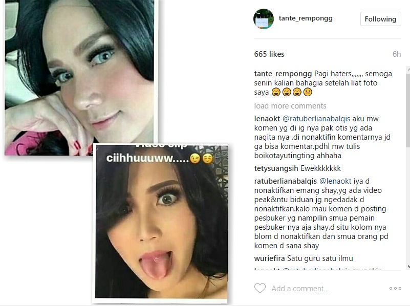 Seperti belum lama ini, akun @tante_rempongg mengunggah dua foto Mulan Jamela. Dalam foto itu, mata Mulan terlihat lebih lebar karena ia tengah menggunakan softlense. Ia juga nampak menjulurkan lidahnya ke arah kamera.