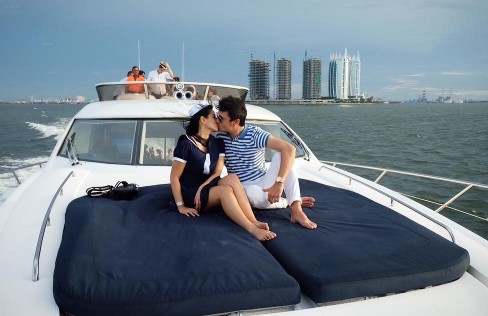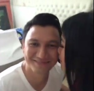 Berlibur berdua di Pantai Mutiara, pasangan romantis ini berbagi kecupan mesra di atas kapal.